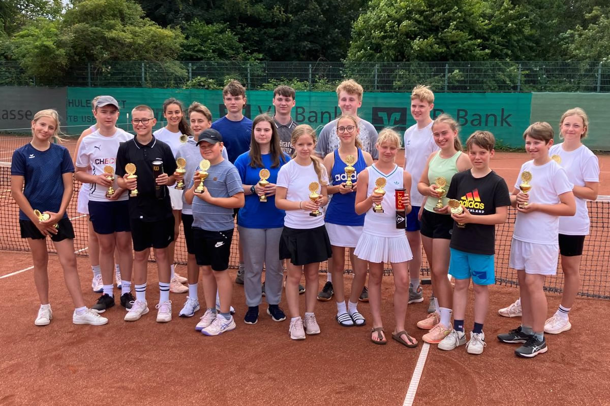 Ein weiteres Highlight war die interne Clubmeisterschaft der Jugend am 20. Juli. Bei strahlendem Sonnenschein versammelten sich knapp 20 Teilnehmer*innen aus allen Altersgruppen – Jungen und Mädchen – auf der Anlage des TCP. In einem bunt gemischten Teilnehmerfeld wurden zahlreiche spannende Matches ausgetragen, bei denen der Spaß stets im Vordergrund stand.
